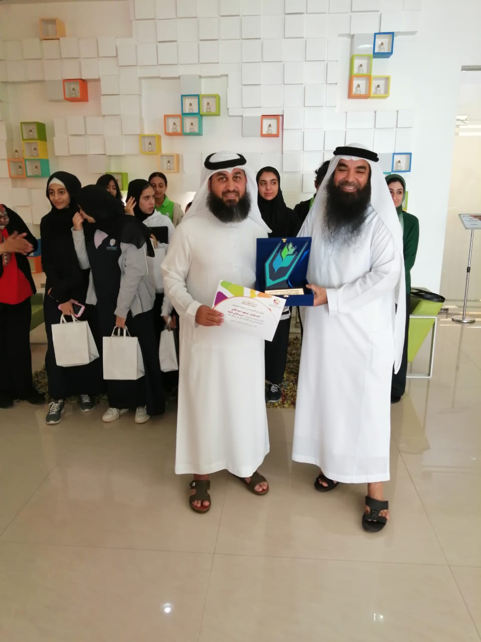 درع تذكاري من أكاديمية رأس الخيمة للموهوبين مقدم للمهندس إبراهيم الشحي المحاضر في ورشة " تقنيات الرسم ثلاثي الأبعاد"