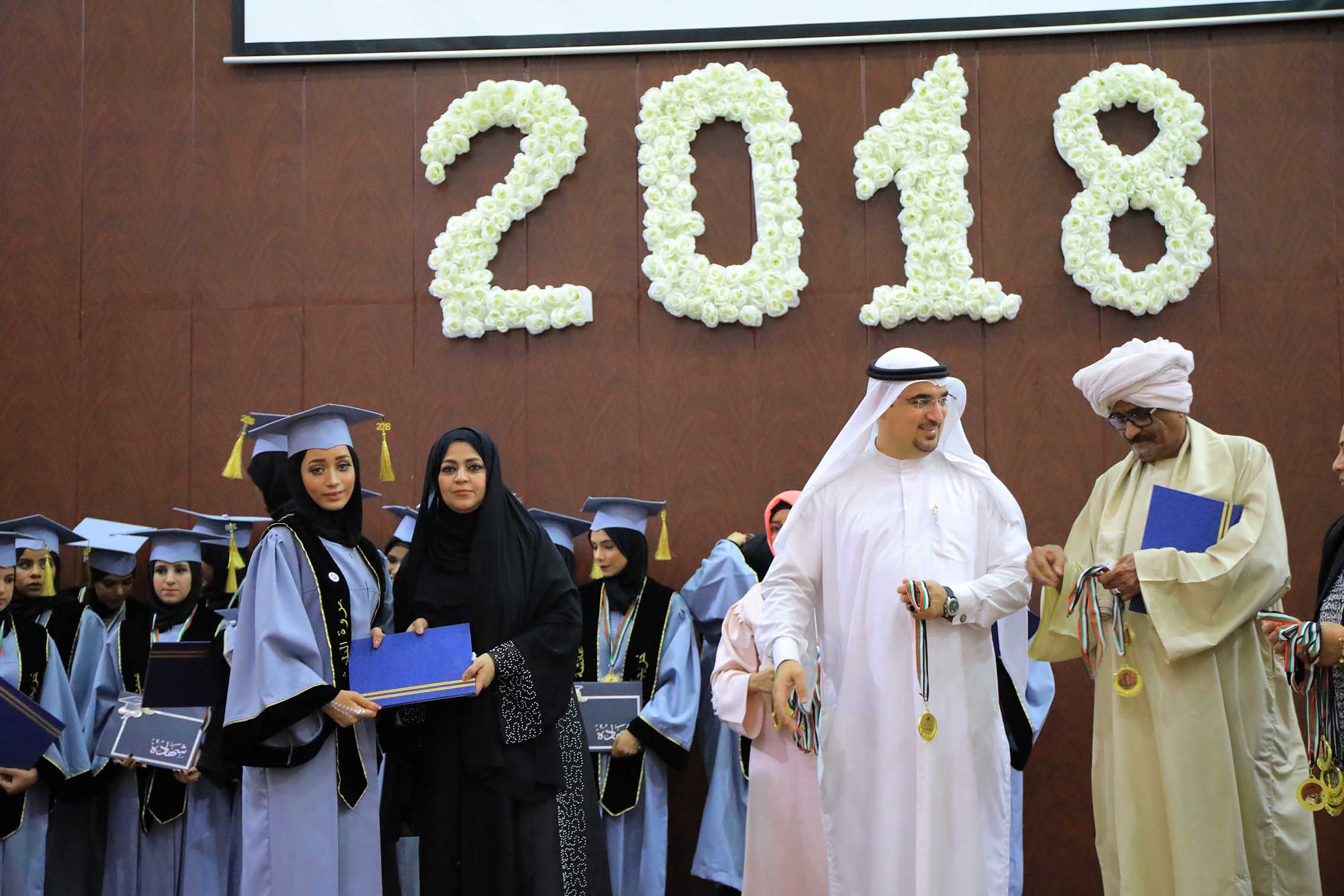 تخريج 168 طالب و طالبة من الصف الثاني عشر للعام الدراسي الحالي في حفلين منفصلين للطلاب والطالبات على مسرح جمعية الإمارات للتنمية الاجتماعية في مدينة صقر بن محمد.